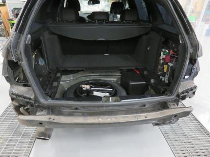ガソリンスタンドで洗車をし終えたところ、誤ってバックで洗車機にぶつけてしまったお車の修理事例です。修理作業はリヤバンパー交換とバックドア板金修理となりました。 |