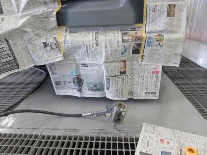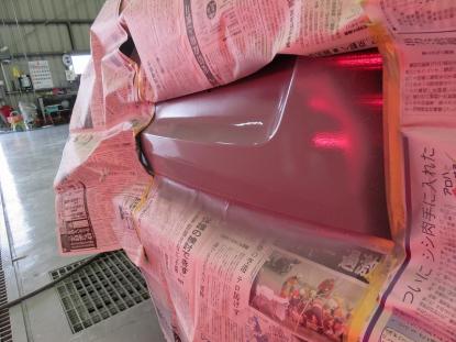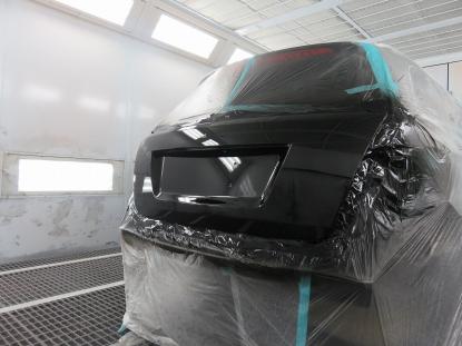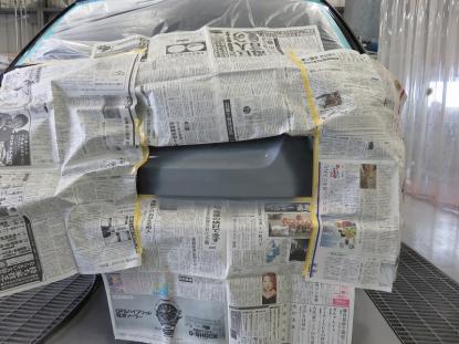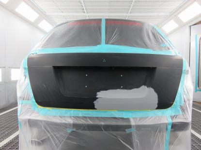 ゴミやほこりがシャットアウトされた塗装ブースの中でマスキングをして塗装前の準備が完了です。 |