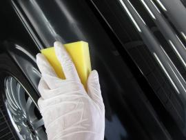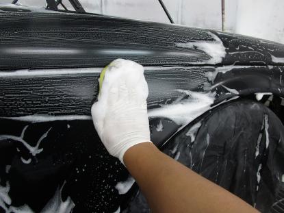 このお車はボディガラスコーティングが施工されていましたので、再施工していきます。 |