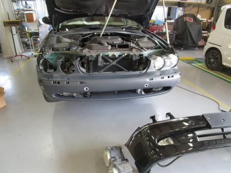 フロントバンパーやヘッドライトを取り外していきます。 |