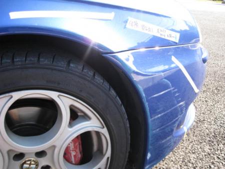 今回はめずらしく?赤(ロッソ)ではなく鮮やかなブルーパールのGTAの修理事例です。専用のエアロやマフラーといった外観からしてノーマルの156とは違い、とても迫力のある車両であり新車発売して時間が経っているにも関わらず根強い人気がある車両です。 |