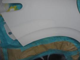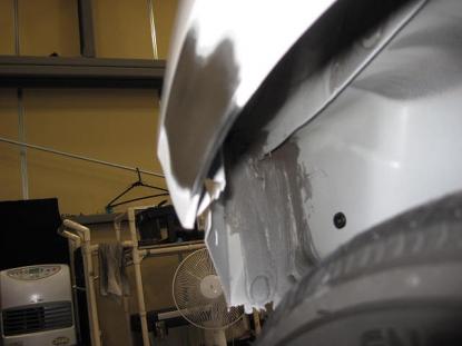 バンパーには変形がなく、傷だけでしたのでこちらも平らに削って仕上げます。 |