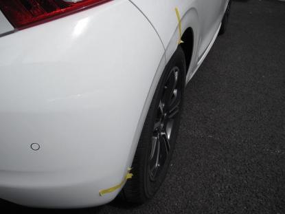 まず、外せる部品はすべて取り外し、リヤフェンダーの損傷を確認します。 |