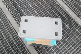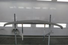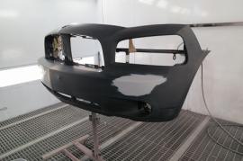 取り外したフロントバンパーとフロントスポイラーの傷をダブルアクションサンダーで平らに削り取り、サフェーサーを塗装します。 |