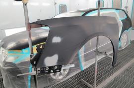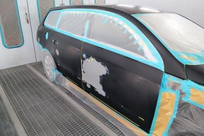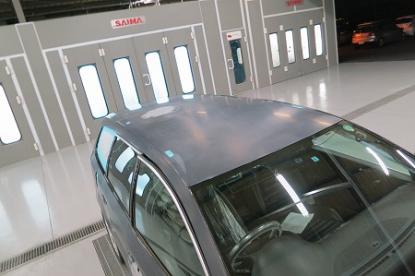 短波と呼ばれる赤外線乾燥機で60℃×20分強制乾燥させてから、ガイドコートをして800番の耐水ペーパーでサンディングします。 |