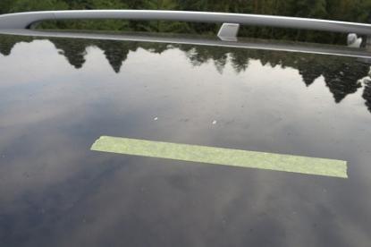 まず、必要な部品を取り外していきます。輸入車の場合、このようにルーフモールを取り外す際にルーフヘッドライニング(天井の内張り)を外さなくては取り外せない構造になっているお車が非常に多いです。また、ルーフを作業する際は、フロントガラスの脱着もなるべく塗装直前まで外さないで作業します。なぜなら、すぐに取り外すと車内にホコリや汚れが付いてしまったりするリスクを最小限にするためです。 |