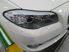 フロントバンパーの交換と今回のダメージで右フロントフェンダーに歪みがありますので鈑金修正します。右ヘッドライトにも僅かながらキズがありましたので交換作業となりました。 |