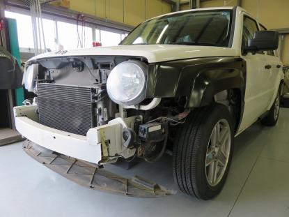 フロントバンパーから順番に取り外し、左フロントフェンダーの交換作業に移ります。 |