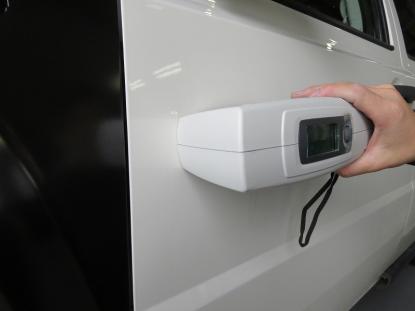 続いて塗装作業に移ります。多角型分光測色機(アクワイヤーⅡ)を使って色の配合を調べます。 |