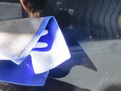 ボディ全体の汚れをシャンプー洗車した後、特殊なタオルで鉄粉を除去します。 |