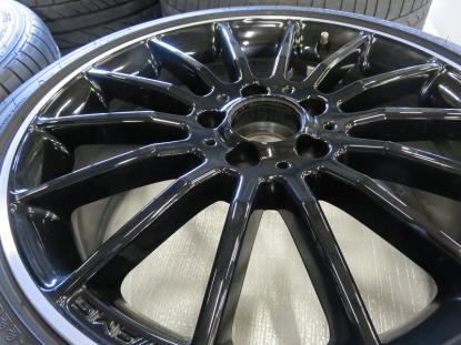 表面の傷を研磨し終えたら脱脂をしっかり行い専用のスポンジでコーティング剤を隅々まで塗っていきます。最後に専用のクロスで拭きあげたらホイールコーティングの完成です。 |