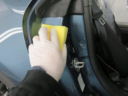 コーティング剤はボディ表面だけでなく、ドアの内側部分に至るまで、すみずみまで塗りこんでいきます。 |