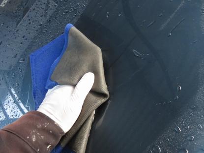 幌を除くボディ全体をシャンプー洗車した後、トラップ粘土や特殊タオルを使い鉄粉や汚れを落とします。 |