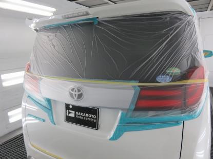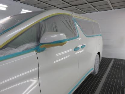 コーティグ剤を拭きあげた後、塗装乾燥ブースにアルファード(30系)を入れ、60℃×1時間の加熱乾燥を行い完成となります。 |