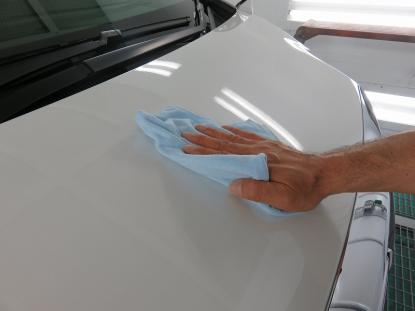 ボディ全体をシャンプー洗車した後、トラップ粘土や特殊タオルを使い鉄粉や汚れを落とします。 |