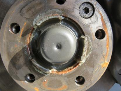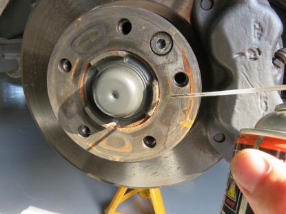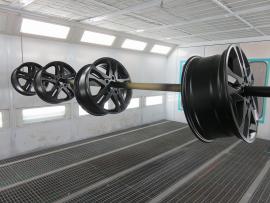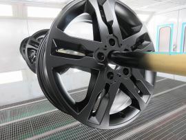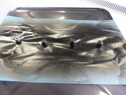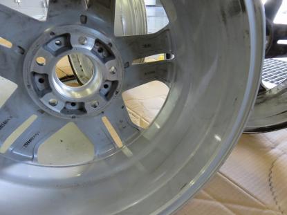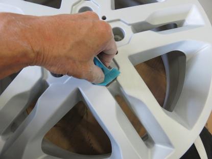 ホイール裏側にこびり付いている汚れをシンナー等で掃除します。 |