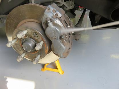 綺麗になったホイールを取り付ける前に、キャリパーの清掃を行います。 |