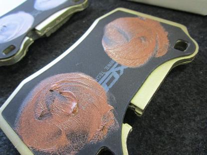 パッドの角を面取りしてからグリスを塗って交換の準備をします。 |