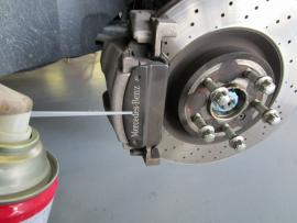 ピカピカになったホイールを取り付ける前にブレーキ廻りの清掃を行います。 |