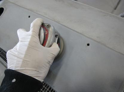 磨きの後、組み付け作業に移ります。FRP製のパーツ取付け時には、必ずネジの緩み止めを使って作業しています。 |