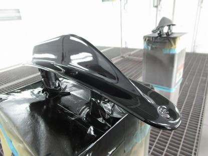 グロスブラック(艶ありの黒色)で塗装が終わりました。表も裏もツルツルピカピカです。 |