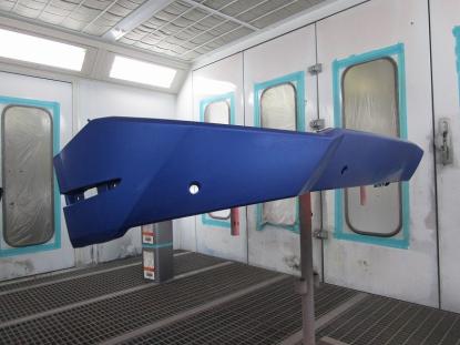 塗装ブースで2液型のサフェーサーを塗装します。 |