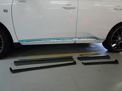 サイドステップやドアのモールも微調整を繰り返しながらフィッティングしていきます。 |