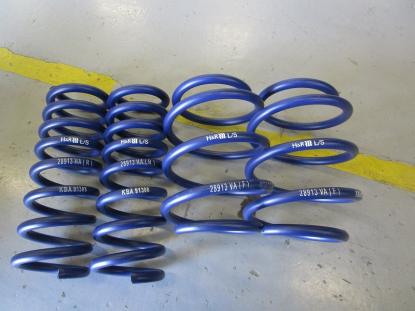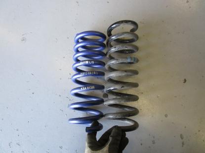 左側がノーマルサスで右側がH&Rのサスになります。大分短くなっているのが分かりますよね!新旧のサスを組み替えて取付けしていきます。 |