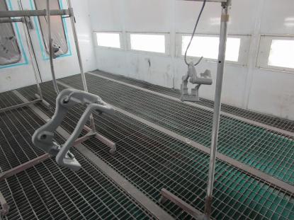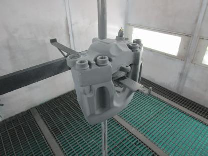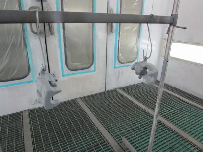清掃してから、専用の台にセットします。その後、脱脂を行ったら塗装前の準備が完了です。 |