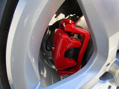 綺麗に塗装されたブレーキキャリパーですので、ホイールの内側もきっちり掃除をしてからボディに取り付けていきます。 |