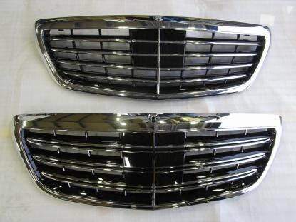 フロントグリルの交換です。上がノーマルで下がマイバッハタイプとなります。 |
