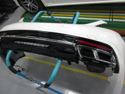 マフラーのテールエンドもS65用に取替て、リヤバンパーに組み付けていきます。 |