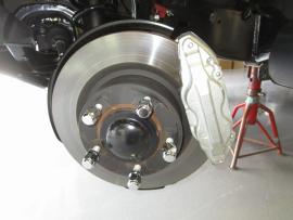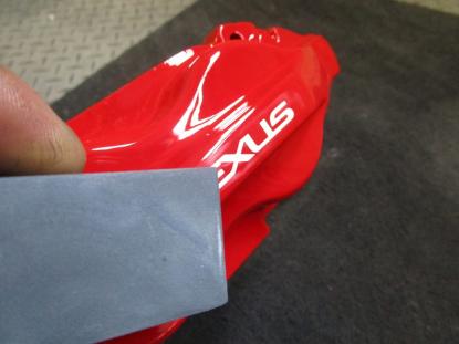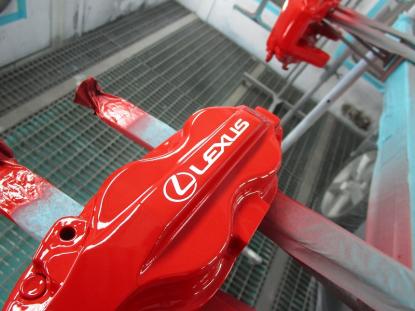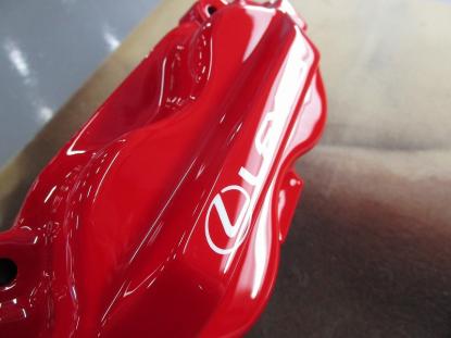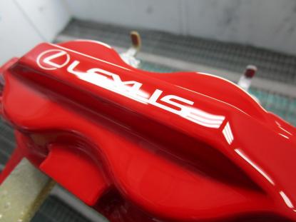 キャリパー本体は耐熱の赤色で塗装し、レクサスのロゴは白色で施工しました。 |