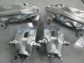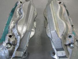 ブレーキキャリパー表面のザラザラをベルトサンダーで削り落としてきます。 |