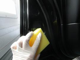 ボディ表面はもちろんですが、ドアの内側までコーティング剤をしっかりと塗りこんでいきます。 |