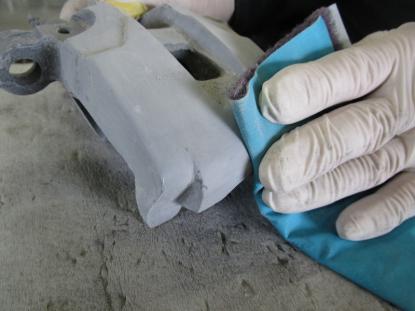 サンディング後、ブレーキキャリパーを台にセットしたら塗装前の準備が完了です。 |