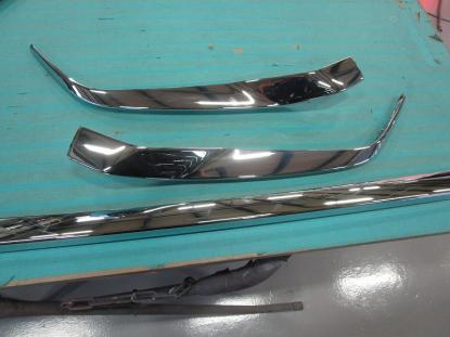 フロントバンパースポイラーはモデリスタを取り付けます。メッキ部分はラッピングフィルムで黒くするため、分解しておきます。 |