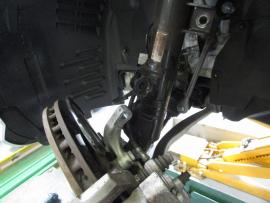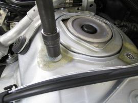 フロントのショックアブソーバーにH&Rのローダウンサスペンションに組み込んでいきます。 |