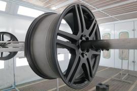 ホイールをマットブラックに塗装し、センターキャップのスターエンブレムはメッキ残しで塗装します。 |
