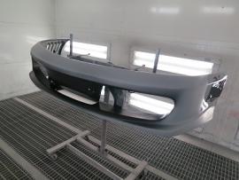 まず、車両から前後バンパ及びサイドステップとリヤディフューザー取り外し、ULTIMATEのパーツを仮付けして、隙間やチリ等を完璧に合わせていきます。 |