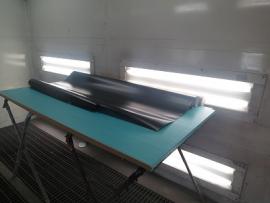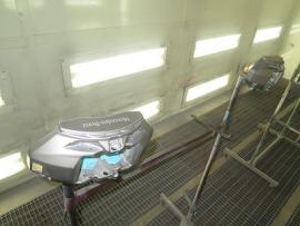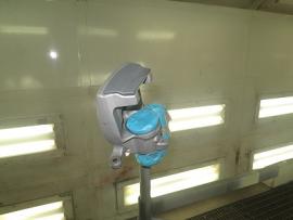 コーティング剤をすみずみまで塗っていきます。その後、コーティグ剤を拭きあげた後、いつも通り、サイマ社製の塗装乾燥ブースにメルセデスベンツW222型Sクラスを入れ、60℃×1時間の加熱乾燥を行います。この熱処理により、コーティング被膜をしっかり硬化させることできます。 |