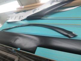 あらかじめ取り外してあったドアのメッキモールをマットブラックでラッピングします。 |
