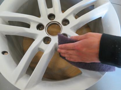 まず、車両からホイールを取り外し、タイヤも脱着して作業致します。 |